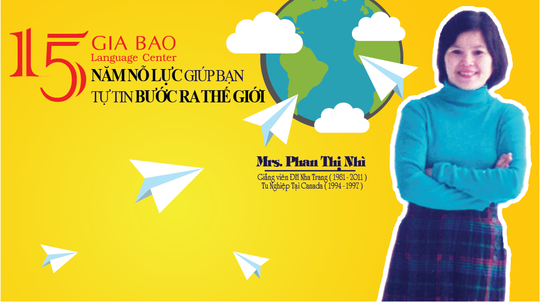 Cô Nhì phụ trách Cơ sở Ngoại ngữ Gia Bảo là cựu giảng viên trường Đại học Nha Trang đã và đang luôn luôn tận tụy với học sinh và yêu nghề dạy học. Cô có kinh nghiệm giảng dạy hơn 35 năm và đã từng học Thạc sỹ tại đất nước Canada 3 năm (1994-1997).
