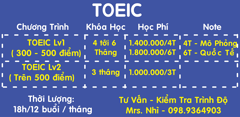- Trực tiếp ôn luyện thi Mrs. Phan Thị Nhì - Quản lý trung tâm với nhiều năm kinh nghiệm đã nghiên cứu và tìm ra phương pháp ôn luyện thi toeic thực sự hiệu quả và tiết kiệm thời gian - chỉ trong 3 tháng, cũng như chi phí rất nhiều.
